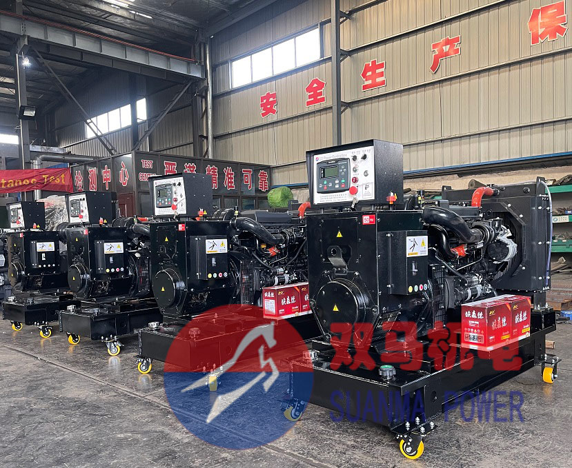 4臺移動發電機,選用開架式濰柴發電機組配置移動輪,小巧便捷。不過這種移動方式,只適用于功率不大,機組重量不重的小功率柴油發電機組。